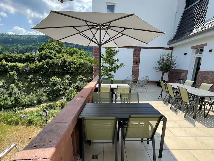 Die MAINTERRASSE ist ein historisches Gebäude und wurde 2022/2023 komplett umgebaut und liebevoll erneuert. Direkt an dem Brückenkopf gelegen, findest Du den perfekten Rückzugsort, sowie auch Ausgangspunkt für zahlreiche Unternehmungen. Von der großen gemeinsam genutzten Terrasse genießt Du den traumhaften Blick auf die Altstadt von Miltenberg und auf den Main mit seinen passierenden Schiffen. Einfach mal die Seele baumeln lassen und bei einem guten Glas Wein den Tag genießen. Hier trifft ein moderner Einrichtungsstil auf historischen Sandstein und bietet Dir den perfekten Ort für Erholung und Erleben. Bei An- und Abreise bieten wir zwei Stellplätze direkt vor der Eingangstür zum be- und entladen. Dauerstellplätze sind rund um das Gebäude gegeben. Für die Fahrräder haben wir einen trockenen und abgesicherten (Kameraüberwachung) Stellplatz geschaffen.